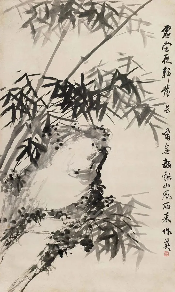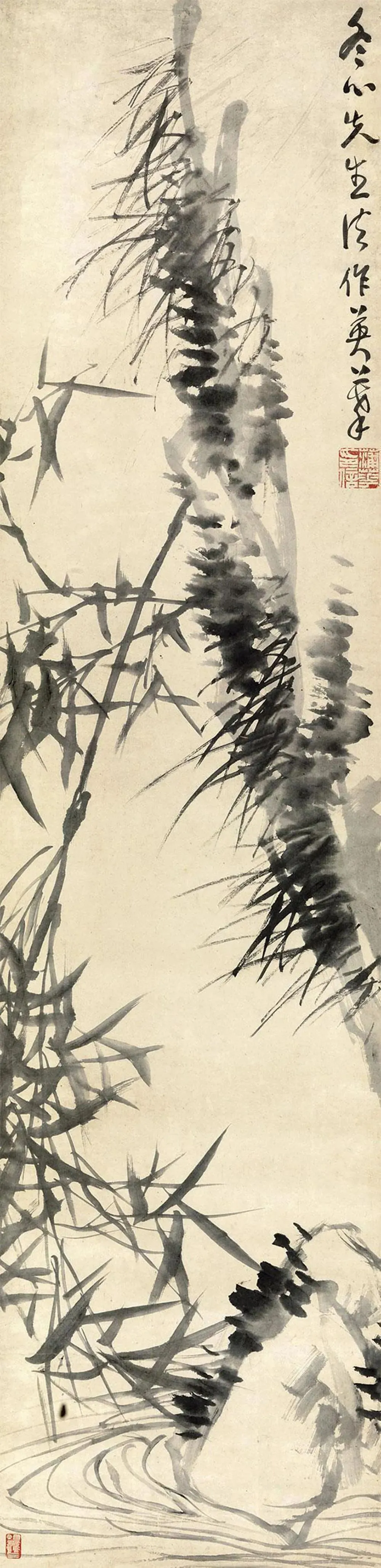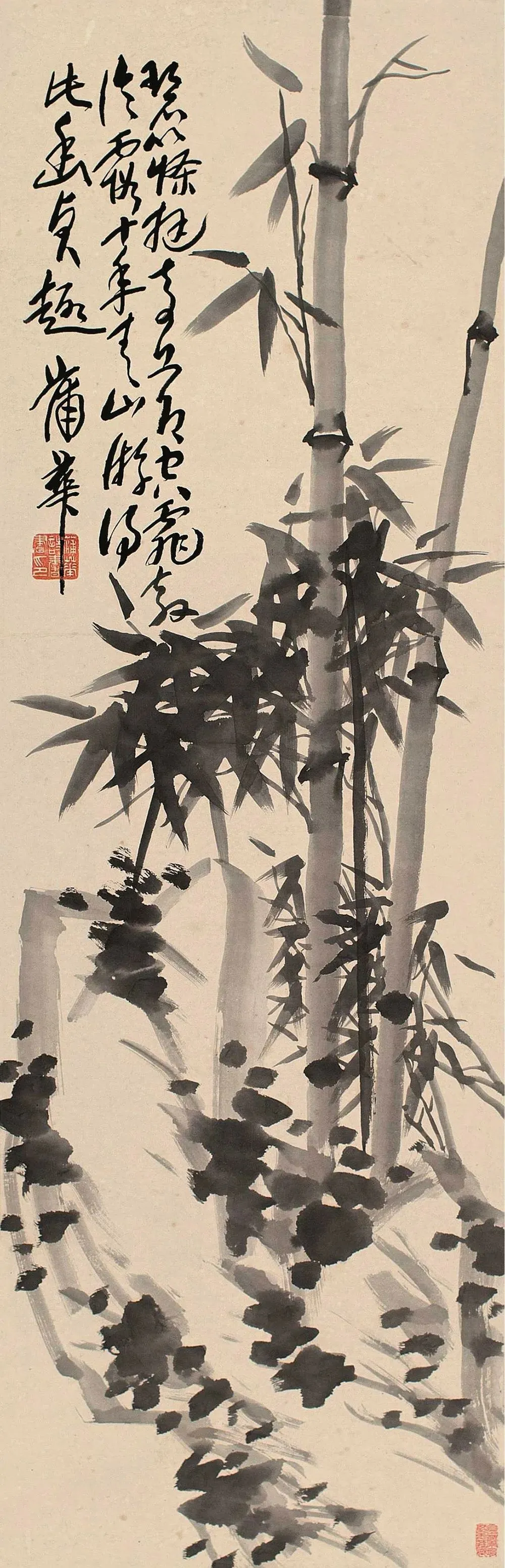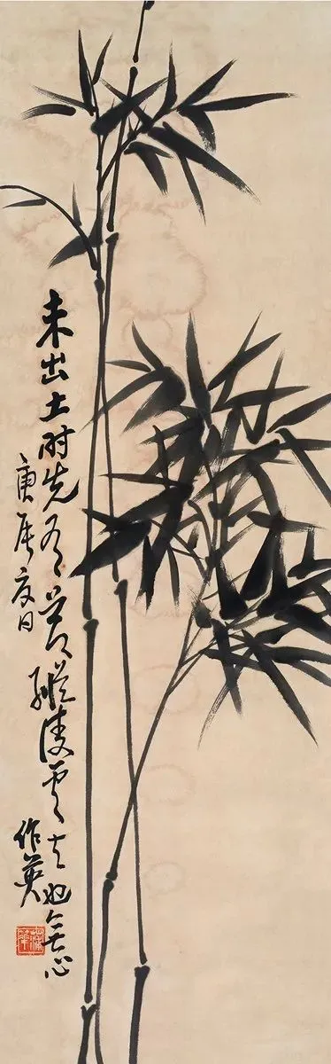 这种泼墨写竹的实践,本质是一场修行仪式。蒲华用狼毫笔代替木鱼,将宣纸化作蒲团,每一滴墨汁都是对"应如何"的反抗。当现代人纠结于"新水墨"的边界时,这位晚清画僧早已用行动证明:最先锋的创作,是让笔墨回归到最原始的生命冲动,让竹子从符号中解脱,重新成为大地生长的野物。